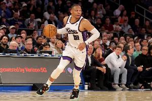 上半场,国王球星威少表现不错,首发出战17分钟,投篮12中6,三分球5中2,罚球2中0,拿到两队最高14分外加1篮板4助攻1抢断的数据,正负值+6。