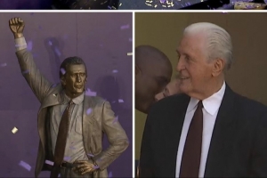 这场赛前,湖人为名宿帕特·莱利举行雕像揭幕仪式,谈到莱利,詹姆斯说:“他是这个联盟有史以来最伟大的人物之一。不仅是作为球员、教练,还有管理层,方方面面都是。显然,他在80年代为湖人队所做的一切,那些都是毋庸置疑的传奇,他也完全配得上在这座球馆外拥有雕像。”