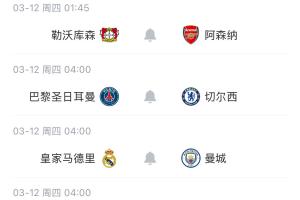 3月12日 01:45 勒沃库森vs阿森纳