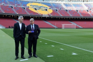体育资讯3月15日讯 《世界体育报》今天放出了他们此前为巴萨主席候选人拉波尔塔和丰特拍摄的照片,两人表现得相当友好。