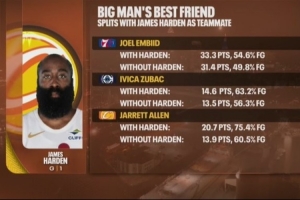 与哈登搭档时: 20.7分,投篮命中率75.4%